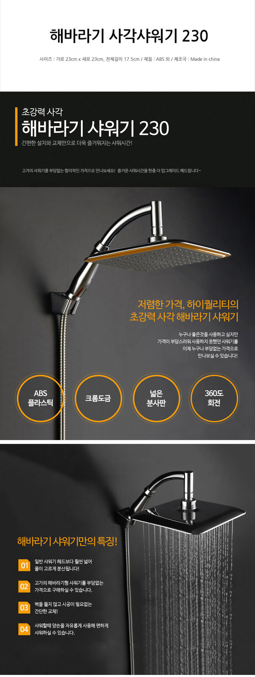 • 사각 해바라기 샤워기230 샤워기헤드 욕실 샤워 수전